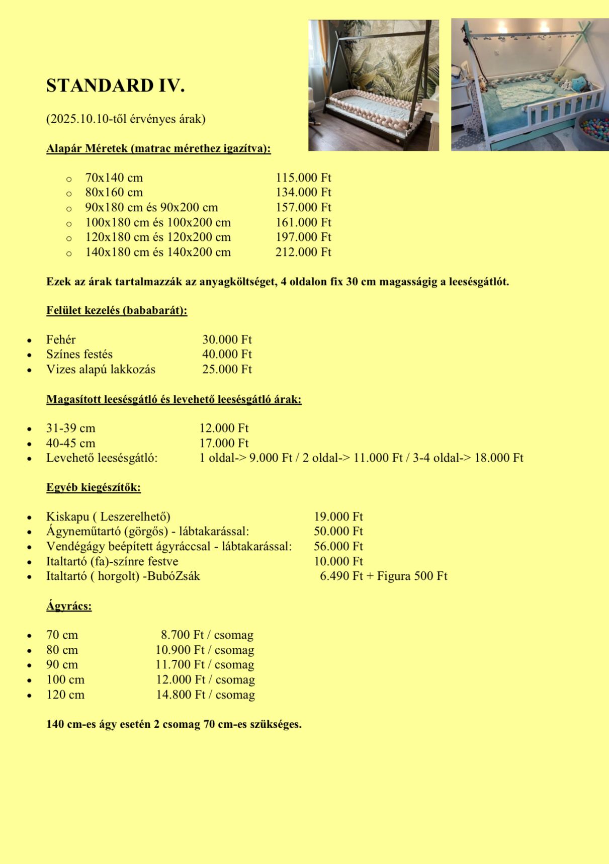• Árlista